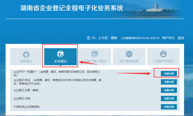 | 湖南省企业登记全程电子化业务系统一网通办 |